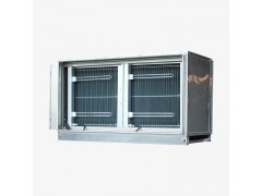 烟气在抽风装置风机的作用下,经过本设备的多级静电场的捕捉分离,成为较为干净的气体再排出,达到了烟气净化的效果,减少对空气环境的污染,在静电场中分离出来的油液、烟尘沉积在电场组件的内壁上,然后汇流到底部排油管排出作统一回收处理。