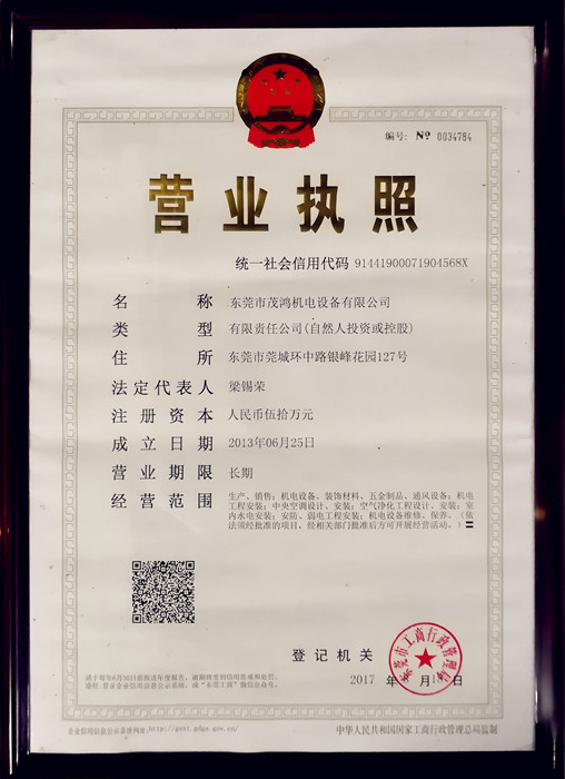 | 发证机构: | 东莞市工商行政管理局 | 发证时间 : | 2013-06-25 |