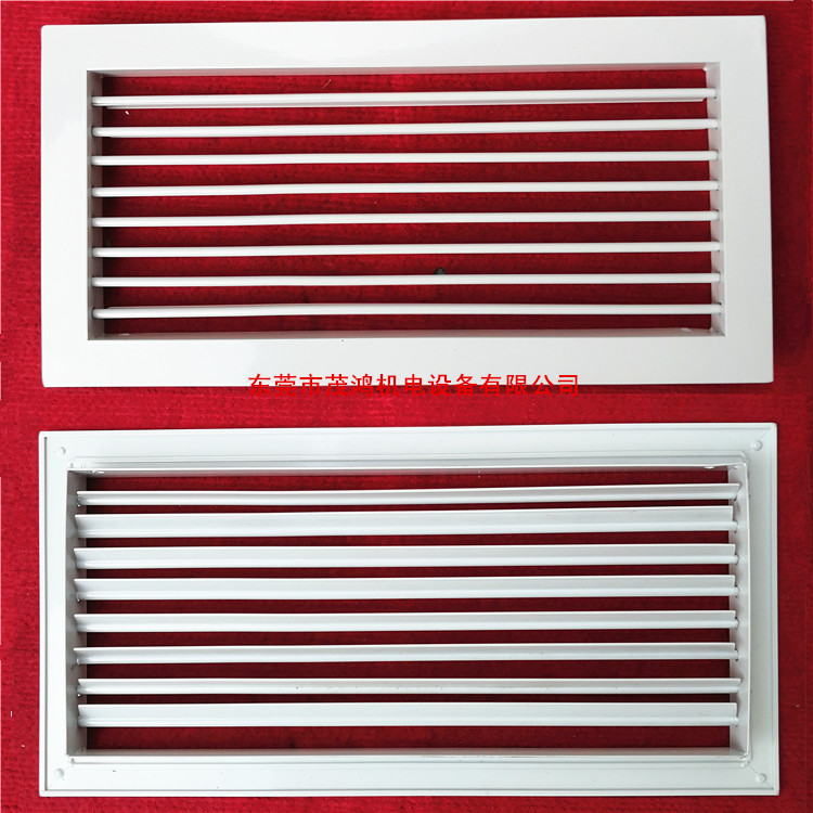 单层可调百叶风口,常用此作为送风口,当作为回风口使用时经常与铝合金过滤器(网)配套使用,在此风口后面亦可装上多叶调节阀,用心控制风量。风口结构形式分两种。A叶片垂直于长边、B叶片平行于长边。