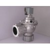 直通式电磁脉冲阀,其进出口之间夹角为180°,通常与气箱脉冲袋式除尘器配套。膜片把分成前、后二个气室,当接通压缩空气时,压缩空气通过节流孔进入后气室,此时后气室压力将膜片组件紧贴阀的输出口,电磁脉冲阀处于“关闭”状态。 脉冲喷吹控制仪的电信号使电磁脉冲阀衔铁后移,阀后气室放气孔打开,后气室迅速失压,膜片组件后移,压缩空气通过阀输出口喷吹,电磁脉冲阀处于“开启”状态。脉冲喷吹控制仪电信号消失,电磁脉冲阀衔铁复位,后气室放气孔关闭,后气室压力升高使膜片组件紧贴阀的输出口,电磁脉冲阀又处于“关闭”状态。