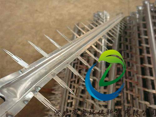 其特征在支撑圆管上冲出辅助放电芒刺,直的边芒刺被夹在两支撑半圆管板之间.新型的夹刺管状芒刺线,电晕放电时电流密度均匀,形成电晕电流大,中,小不同等级的不会掉边芒刺的一类管状芒刺线,使电除尘器运行可靠,除尘效率高,能耗低,适用于电除尘器.