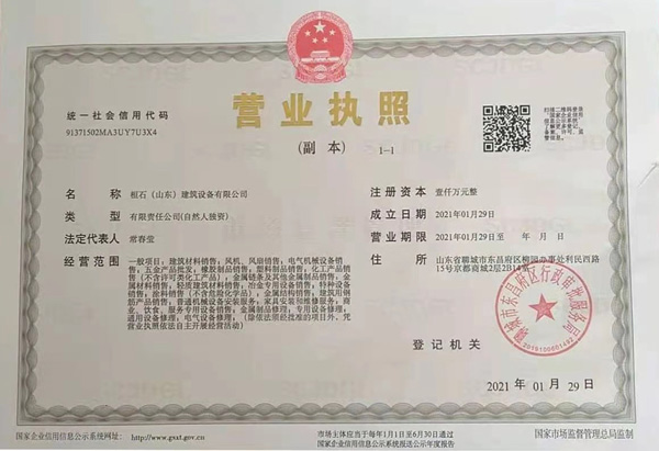 荣誉资质 桓石(山东)建筑设备有限公司营业执照