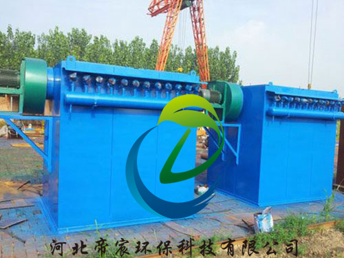含尘气体由单机除尘器进风口进人箱体,通过滤袋进行过滤,粉尘被留在滤袋内表面,净化后的气体通过滤袋进人风机,由风机吸入直接排入室内(亦可以接管排出室外)。随过滤时间的增加,滤袋内表面黏附的粉尘也不断增加,滤袋阻力随之上升,从而影响除尘效果;采用自控清灰尘机构进行定时控振清灰或手控清灰机构停机后自动摇振数十秒,使粘在滤袋内面的粉尘抖落下来,粉尘落到灰门、抽屉或直接落到输送皮带上。