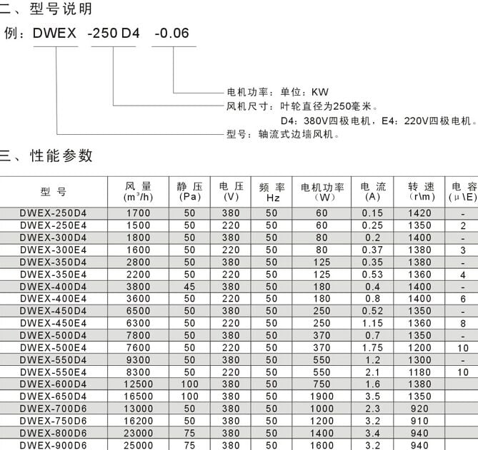 DWEX边墙风机系列采用先进的前掠型叶片、低噪音的外转子或内转子风机专用电机直联传动,方形外壳设计可以方便地安装在混凝土墙、砖墙或轻钢压型墙板上,方形防雨罩结构牢固,外形美观。具有噪声低、风量大、运行可靠、性能参数范围广、安装简便等特点,广泛应用于厂矿企业车间和民用、商用建筑工程的边墙壁式通风换气。根据输送介质的要求,可制成防腐、防爆型。