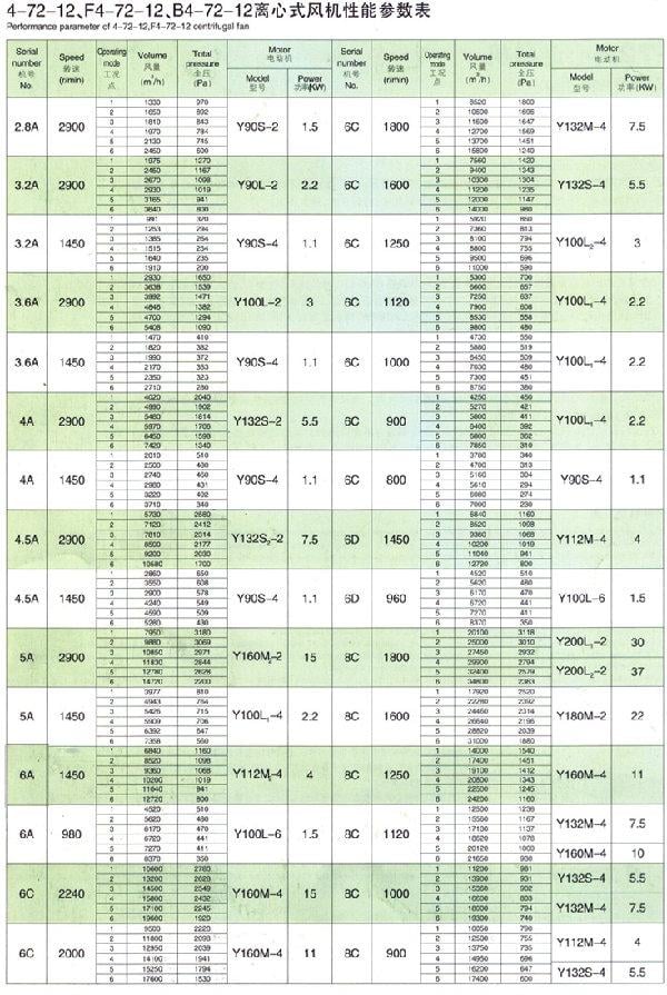 离心风机的出口位置,以机壳的出风口角度表示。4-72型风机№2.8~6出厂时均做成一种型式,使用单位根据要求再安装成所需要的位置,订货时不需注明。其中№2.8出风口位置调整范围是0°~255°,间隔是45°;№16、20出风口位置制成固定的三种0°、90°、180°,不能调整,订货时需注明。