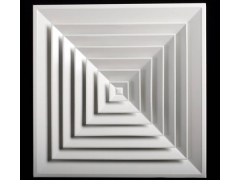 方型散流器使用该类型散流器时要与调节阀配合使用,才能在系统中得到理想的气流分布。此风口的叶片角度为固定式,不能随意调节,整个叶片与边框采用分离结构