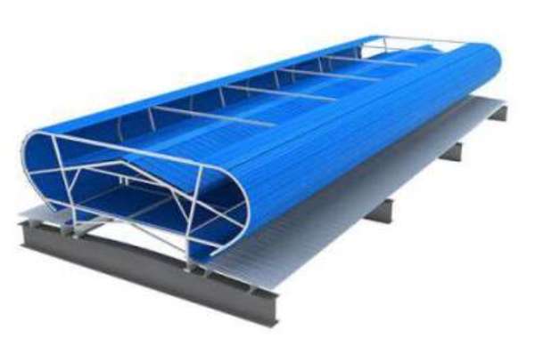 是工业建筑常用的一种通风采光设施,通风采光设施、外观优美;圆拱形排烟天窗兼顾自然采光,可实现消防联动控制,满足消防排烟要求,目前在各行业应用都比较广泛。主要材料通常采光不同规格的铝型材,采光材料一般使用PC阳光板或FRP采光板,天窗顶部为拱型,其好处是可以折射阳光扩大室内采光面积,且拱型的窗面利于夏季排雨,冬季又不易积雪,本身的自洁性较好,表面浮尘雨水冲刷,经常保持较好的采光效果。