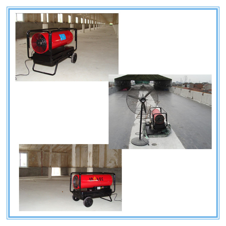 二、在很多大型工程,到了冬季,由于气温降低,施工进度缓慢,混凝土浇筑、墙面粉刷等项目无法干燥,而不得不提前停工,严重耽误工期,造成大量损失。这个时候你就需要燃油工业暖风机来为您解决混凝土保养、工程干燥等问题,并且还可以顺带解决工程取暖问题,室内温度可以升至您期望的值,工人干活也无需穿着厚重,大大提高工作效率。