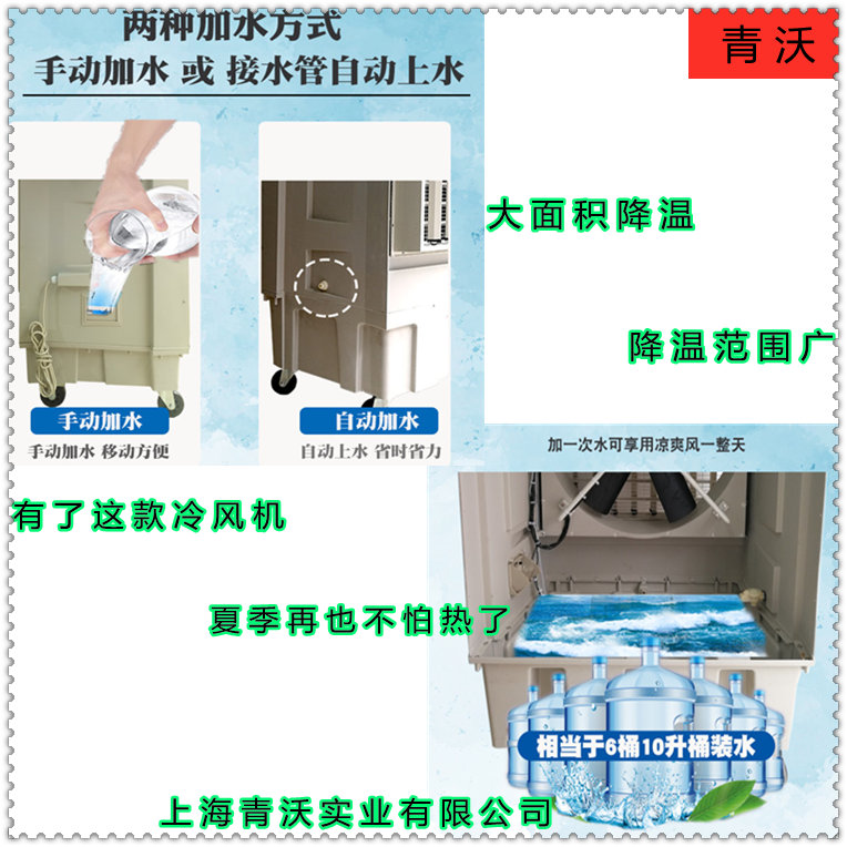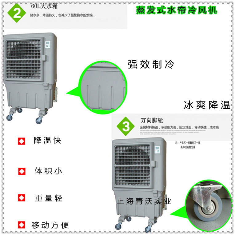 冷风机又叫环保空调、水冷空调、湿帘冷风机、蒸发式冷气机。它是一种非常省电的设备,一台6000风量的冷风机可以解决50平方空间的通风降温问题,因为不使用氟利昂及压缩机,对空气不会产生污染,非常环保。重要的是冷风机具有通风换气的作用,它可以对室内进行空气置换,保证一个清新干净的生产环境。