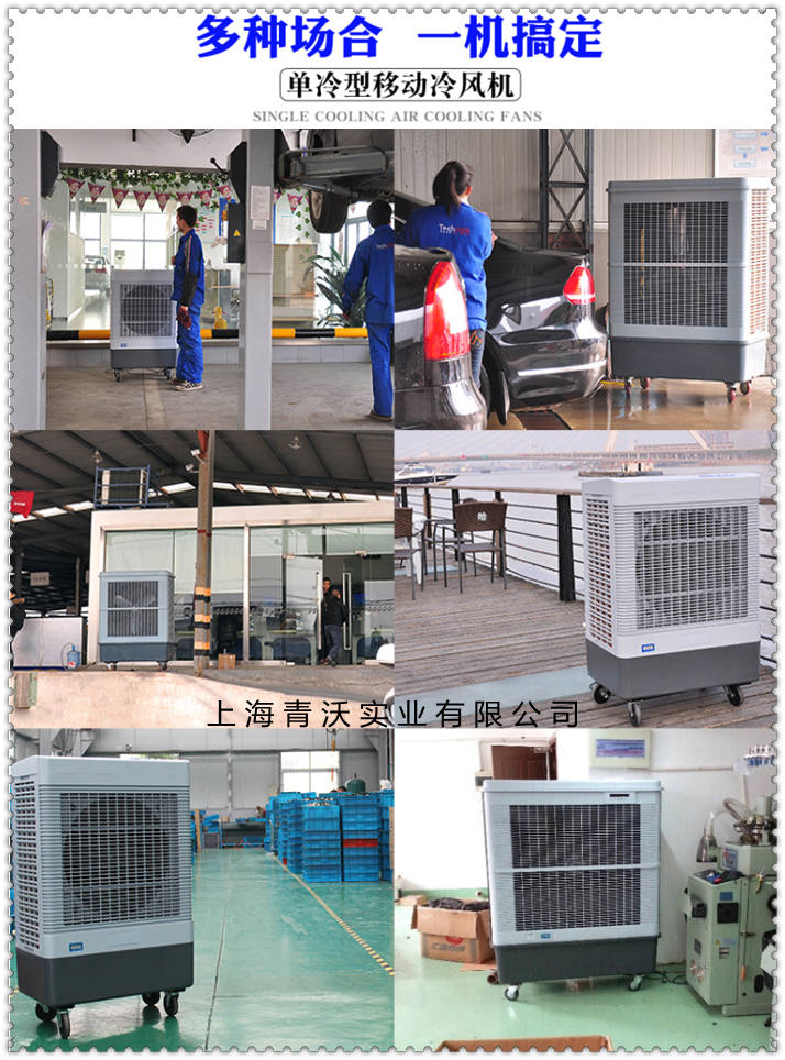 4.特别适合固定工位降温、流动性工作岗位降温、设备检修流动降温、仓储搬运工作降温、室外临时工作降温等需要移动使用的场所,