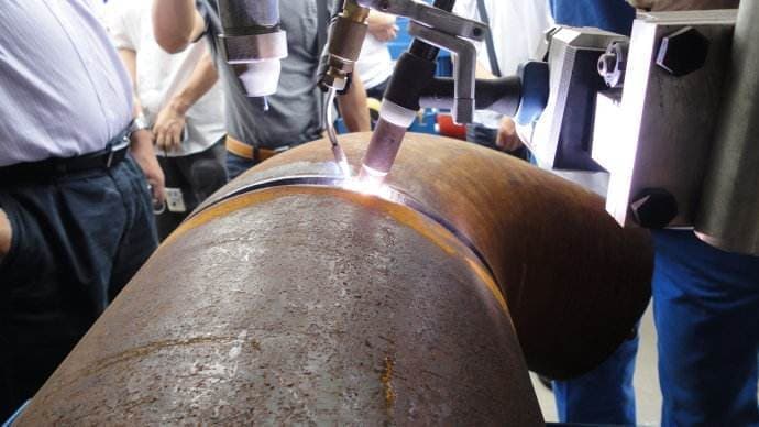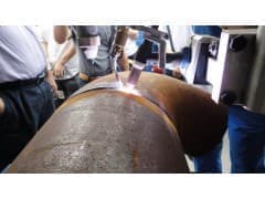 前端为机械手焊接辅机:将待焊接的工件水平摆放在辅机上,通过尾座压紧工件,工件焊缝起点需要放置在机械手模拟示教的路径原点上(类似数控加工对原点一个原理)。此方案可以实现环缝、直缝、复杂空间路径氩弧、CO2焊接工艺。做复杂路径焊接时,只需要让机械手在工件的需焊接位置模拟行走一遍,就可以自动生成工件的加工路径文件,文件还可以用U盘进行导出。