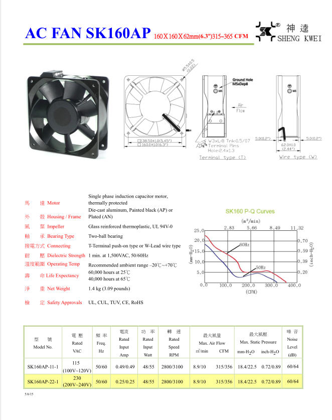 SK160AP-22-1原装台湾神逵SHENGKWEI变频器散热风扇 轴流散热风机