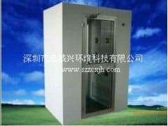 风淋室是人进入洁净室所必需的通道,它可以减少进出洁净所带来的污染问题。风淋室的两道门电子互锁,可以兼气闸室的作用,防止未被净化的空气进入洁净室,我公司生产的高科技智能语音风淋室带的语音提示系统,人在吹淋时由自动语音系统提示让人有次序的完成整个吹淋除尘过程,人性化语音提示给人一种亲切感觉,并达到有效的净化效果,以高效过滤器过滤后的洁净气流由可旋转喷嘴从各个方向喷射至人身上,有效而迅速清除尘埃粒子,空气由初、高效过滤后吹到风淋区域。