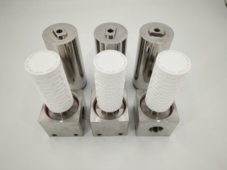 负压吸引除菌过滤器是过滤精度为0.22μm的微孔膜滤芯组成,主要用于防止空气中的杂质和有害细菌、微生物等进入罐体、生产线、无菌室等,引起水质、产品和无菌室环境的变化,满足食品、生化、饮料、啤酒、电子等行业的工艺需要,是一种疏水型气体除菌过滤器。