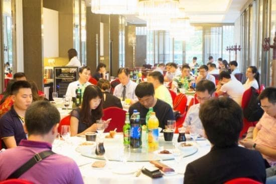 晚宴现场高朋满座,杜塞尔多夫展览有限公司总经理曾耀德先生、金蜘蛛传媒总经理曾楚君女士以及来自全国各地超过80家的行业朋友欢聚一堂,觥筹交错间,共叙情谊。