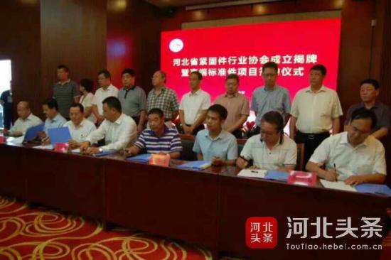 9月19日下午,河北省紧固件行业协会成立揭牌暨标准件项目签约仪式在永年政府宾馆隆重举行。省民政厅、市民政局、中国机械通用零部件行业协会领导应邀出席仪式,区委书记侯有民和区领导焦振宗、韩敬辉、李继恒、庞明德、李红梅、郭晓峰、陈冰出席活动,河北省紧固件行业协会会长、秘书长、党支部书记、副会长、协会全体会员,广东省紧固件行业协会、温州紧固件行业协会、永年异地商会及部分知名标准件企业家参加。