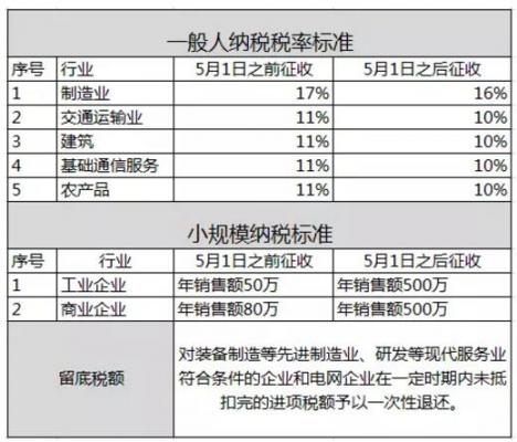 从2018年5月1日起,制造业纳税标准将从17%降到16%。