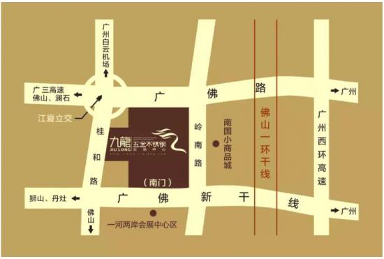 九龙五金不锈钢交易中心地处佛山市南海大沥广佛国际商贸区的中心区域北临广佛路、西靠桂和路、南接广佛新干线、东邻南国小商品城,是黄金商贸走廊的核心地段,交通便捷,强势辐射珠三角经济重地。