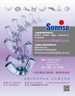 主打产品:冷镦蝶形螺母,四爪螺母,冷镦蝶形螺钉,弹簧螺母,铁皮冲压蝶形螺母,家具螺母、螺钉,拇指螺丝,兰花夹等。产品远销欧美、非洲、中东、亚洲及全世界各地。