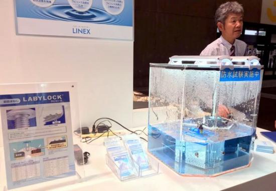来自日本的LINEX新防水螺丝,形象演示防水试验实施中。