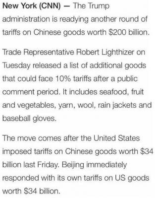 美国时间7月10日,特朗普政府发布了一份关于对价值2000亿美元的中国商品征收10%的进口关税清单,中美贸易战再次升级。