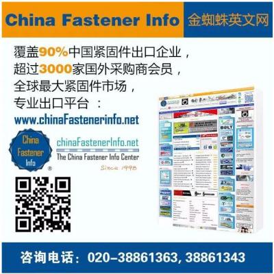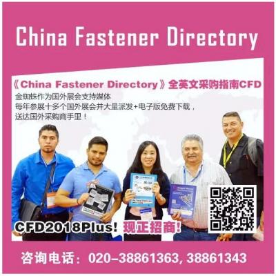 金蜘蛛明星出品专门在海外市场派发的全英文采购指南《China Fastener Directory》,每期发行3万册,参展超过12个国外展会,送达国外采购商手里,并在金蜘蛛英文网 China Fastener Info 上无限量免费下载电子版,在国内外赢得高度赞誉,为中国紧固件企业创造更多产品出口和对外合作的机会。