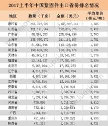 2017上半年,浙江省嘉兴市紧固件产品进出口总额为4.79亿美元,其中出口4.63亿美元,同比增长20.48,进口0.16亿美元,同比增长15.83。排名 名 称 金 额 1 浙江东明不锈钢制品股份有限公司... [详细]