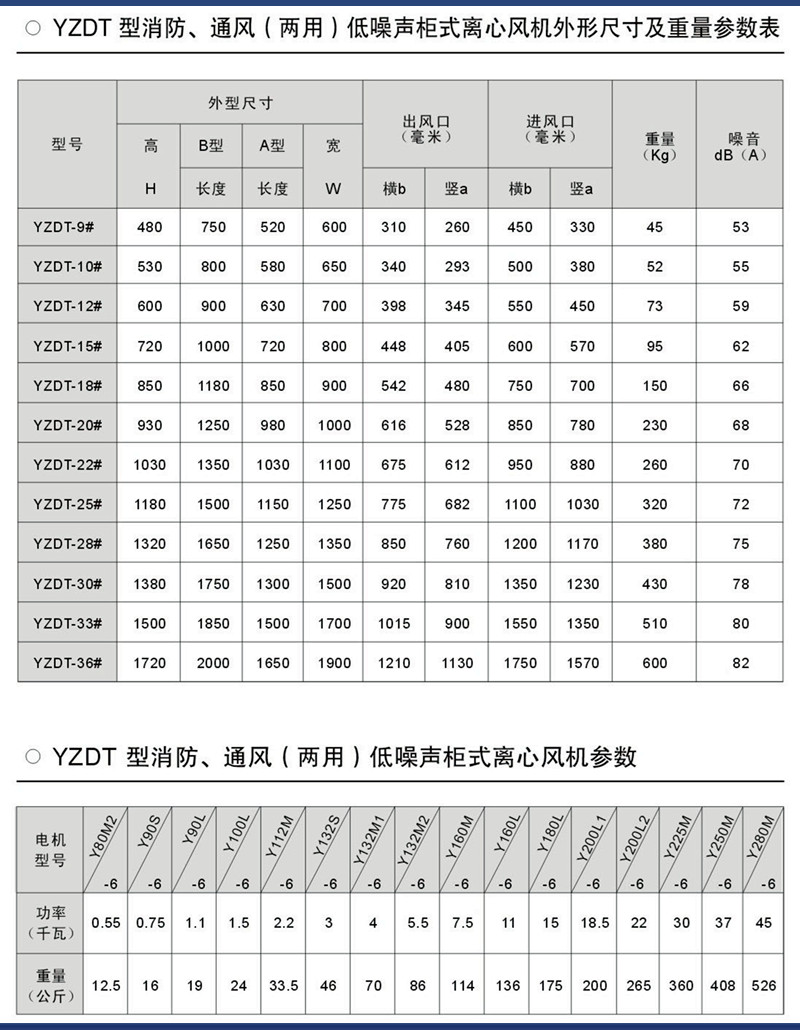 7、风机可配单速或双速两种电动机,其空气性能详见参数表。