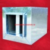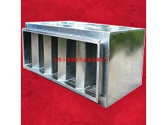 阻性片式消声器是根据通流截面为一定时狭窄矩形通流截面的消声值比方形高的原理设计而成。在通流截面中纵向适当配设以超细玻璃棉作吸声材料的吸声片,其面复盖镀锌钢丝网,内管用镀锌穿孔板与外管间填充超细玻璃棉作吸声材料组合而成。适用于通风空调的中、中、低压离心风机进、排风口消声。在一些降噪声要求较高的场合尤为合适。但不宜让含水雾、油雾、腐蚀性气体或含尘量大于150mg/m3的气体通过,要求气体温度小于200°C。