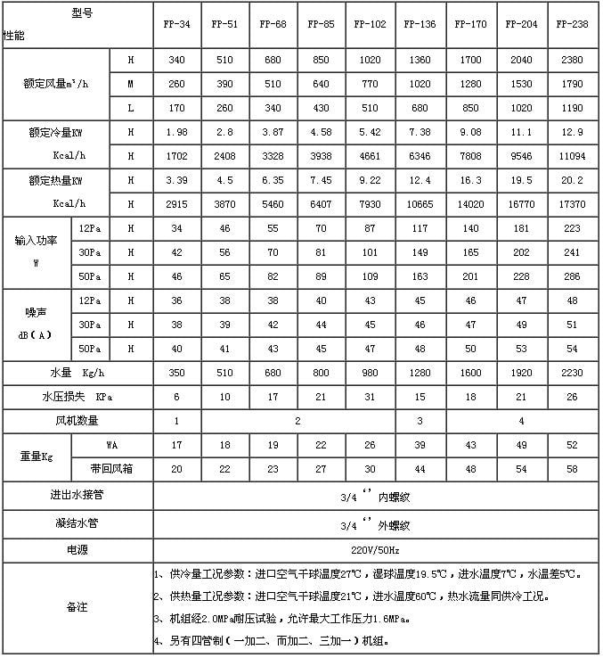 卧式暗装风机盘管机组性能参数(GB/T19232-2003)