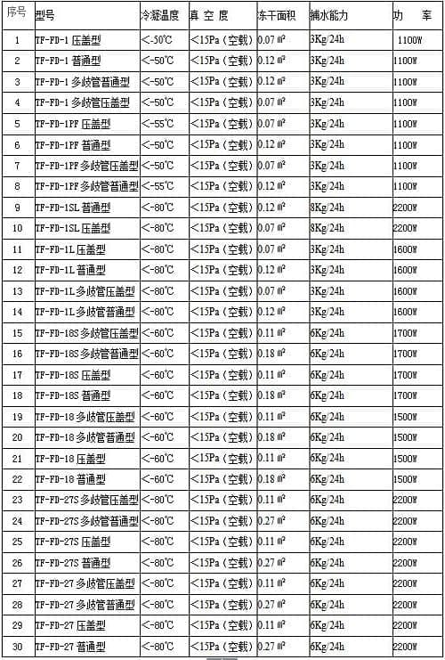 一、拓纷实验型冻干机列表