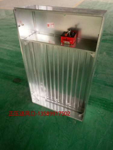 常闭正压送风口的特点是: 输入DC24V电信号、电磁铁动作、阀门迅速开启。 手动开启,手动复位关闭。 可输出阀门开启信号及联锁控制信号。 WsDcK多叶排烟口装置280 ℃ 温感器,当排烟温度280 ℃ 时,排烟口关闭。 水平安装、垂直安装或者倒立安装都能正常开启、关闭。