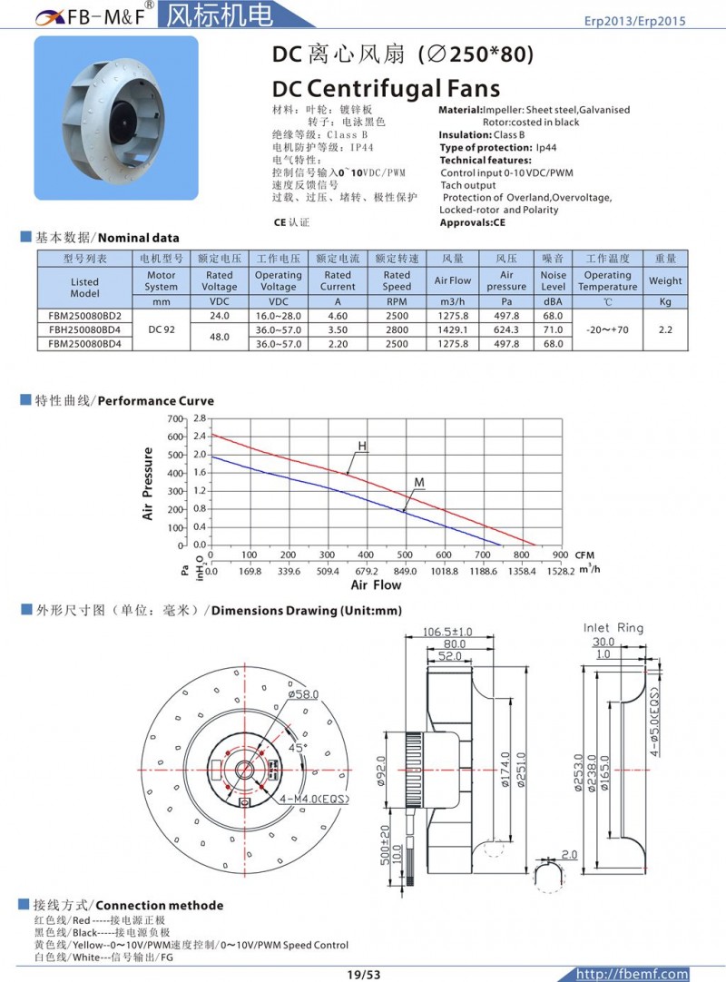 FB-M&F品牌DC离心通风机280*80 DC92可调速,产品全系列供货,可提供样品及批量定制服务,电极防护等级:IP44IP55IP68可定制!具有德国EBM风机进口品质!
