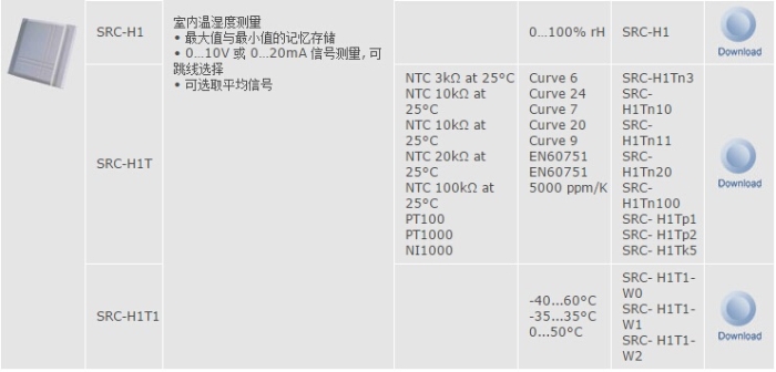 SRC-H1T1该型号为温湿度传感器,通过热敏电阻NTC来检测温度。该微处理器每秒对湿度进行一次采样。根据滤波时间计算信号平均值,并且根据湿度量程做线性变换,然后产生信号输出。本产品适用于中央空调室内温湿度采集。