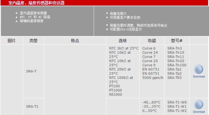 该型号为温湿度传感器,通过热敏电阻NTC来检测温度。该微处理器每秒对湿度进行一次采样。根据滤波时间计算信号平均值,并且根据湿度量程做线性变换,然后产生信号输出。本产品适用于中央空调室内温湿度采集。