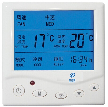 该系列温控器产品采用大屏幕液晶显示,兰底黑字,亮度可变,豪华美观。可用于各种中央空调风机盘管、风口、加热设备的控制。可选配红外遥控器。