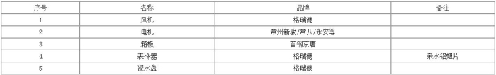 格瑞德风机盘管配置表