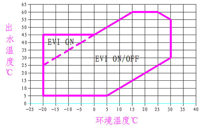 D1系列制热工况运行范围: