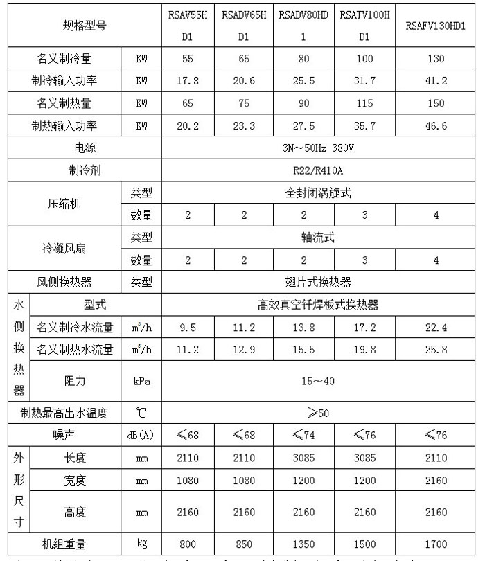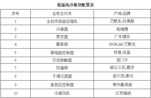 D1系列超低温模块热泵机组参数表: