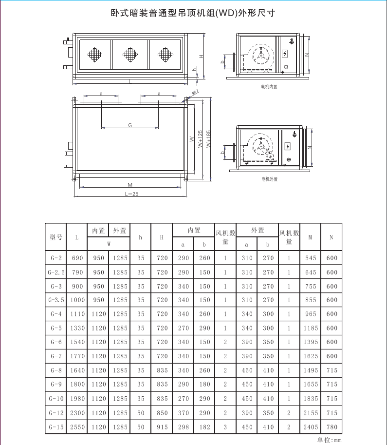 此型机组的高度薄,特别适合于安装在吊顶内,不需占地。 |