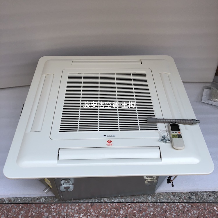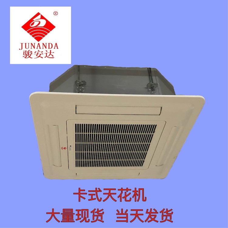 卡式空调又叫吊顶式空调,属于商用空调的一种,分室外机和室内机,大体构造等同于家用的小型空调。制冷能力要比家用空调强,但远远比不上中央空调的制冷能力。一般多用在办公室。可控制温度。(只有几个房间需要空调)。这种空调室内机安装于平面吊顶上。所以对吊顶上面的空间要求相当大,一般要求不低于40厘米的空间,所以不适合家庭用。