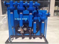 工作原理:压缩空气中水蒸气的量是由压缩空气的温度决定的:在保持压缩空气压力基本不变的情况下,降低压缩空气的温度可减少压缩空气中的水蒸气含量,而多余的水蒸气会凝结成液体。冷冻式干燥机就是根据水的饱和蒸汽压力和温度之间的对应关系,l用制冷装置使压缩空气冷却到一定的l点温度,析出所含的水份,通过汽水分离器与电动排水器将水排出,从而使压缩空气得到干燥。