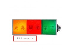灯箱用于工程掩体内部空气质量状态的显示和报警,主要对三种空气质量情况进行报警:清洁、隔绝、滤毒。灯箱分别用三种颜色的灯光来对三种不用空气情况报警:清洁——绿色灯光;隔绝——红色灯光;滤毒——黄色灯光。