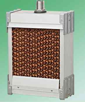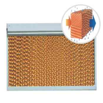 系统的降温过程是在其核心——湿帘纸内完成的。在波纹状的纤维纸表面有层薄的水膜,当室外的干热空气被风机抽吸穿过湿帘纸时,水膜中的水会吸收空气中的热量后蒸发,带走大量潜热,使经过湿帘纸的空气温度降低,经过这样处理后的凉爽湿润空气进入室内。与室内的热空气混合后,通过风机排出室外。同时,在冷却过程中,清除室外空气中之粉尘废气、增加进气含氧量,使之室内空气更为清新,工作环境空气品质更佳。