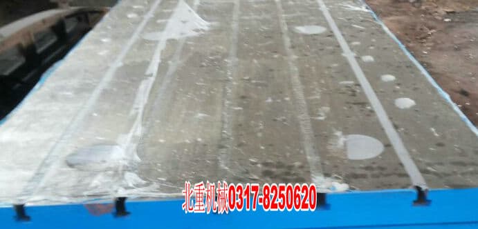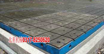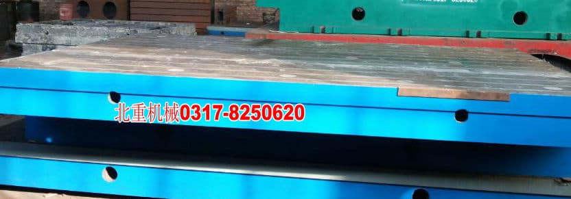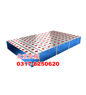 铆焊平台用于铆焊工艺的基础平板,工作面上有孔和T型槽,孔是用来清理铆焊时的一些铁渣和焊接废弃物