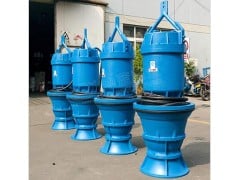 潜水轴流泵:驱动水泵的电动机是干式全封闭潜水三相异步电动机,可以长期浸入水中运行,具有传统机组一系列无可比拟的优点。