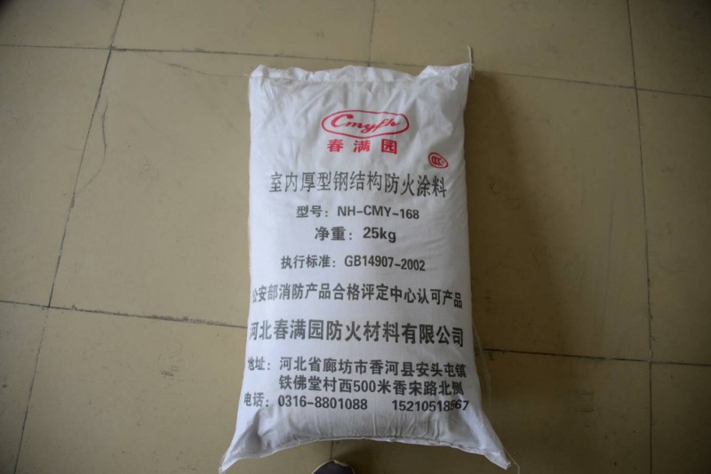 NH室内厚型钢结构防火涂料是我厂开发出的新产品,它取代了以前厚型钢结构防火涂料双组份的施工工艺,使施工工艺变得更    加简 单易行,而且附着力强,耐火隔热性能好,23.61mm的涂层厚度耐火极限可以达到3个小时。