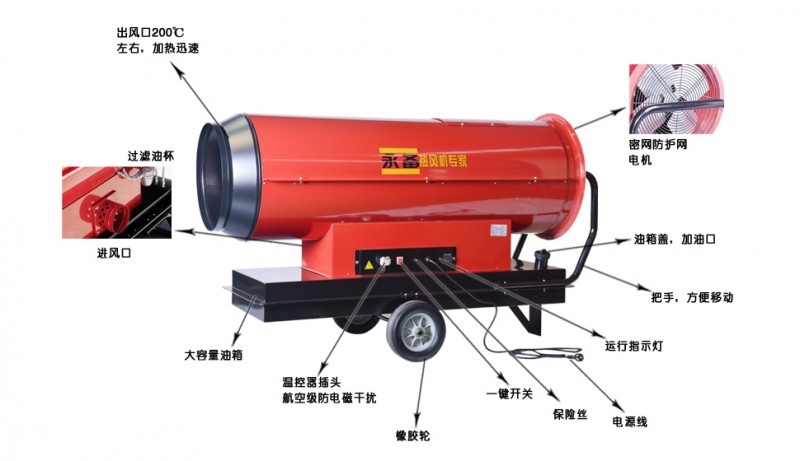 Tornado115 永备燃油热风机适用于非洲猪瘟车辆的消毒或中大型的建筑工地或者工作车间的临时采暖或干燥/大型的养殖场加热保温/广泛用于保育、育雏阶段的加温加热。