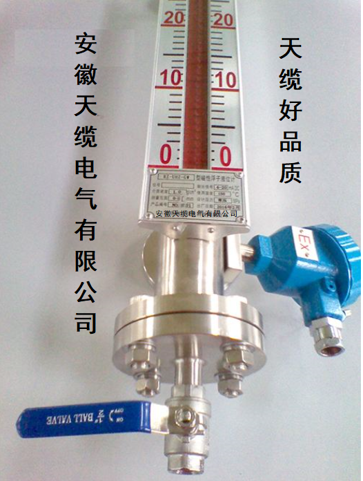 安徽天缆电气磁性浮子式液面计安装于桶槽外侧延伸管上,桶槽内部的液位能由翻板指示器清楚得知。旁路管外侧亦可加装磁性开关,做为电气接点信号输出,或装置液位传送器做远距离液位信号传送及液位控制。该液位计是具有可靠的安全性仪表。液位计是根据浮力原理和磁性耦合作用原理工作的。当被测容器中的液位升降时,液位计主导管中的浮子也随之升降,浮子内的##磁钢通过磁耦合传递到现场指示器,驱动红、白翻柱翻转180°。液位上升,翻柱由白色转为红色;液位下降,翻柱转为白色,指示器红、白界位处为容器内介质液位的实际高度,从而实现液位指示。安徽天缆专业生产UHZ磁性浮子位计系列UGS双色液位计、UDC玻璃板液位计、UQK浮球液位控制器等近百个品种,产品畅销全国各地多家特大企业。