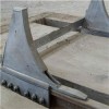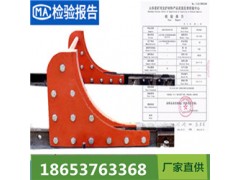 月牙挡车器为45号钢分2半整体精密铸造通过∮24螺栓将两半月牙挡紧固密贴在钢轨上,安装时,在钢轨上按月牙挡螺栓孔位子钻孔用M24高强螺栓固定于钢轨上。